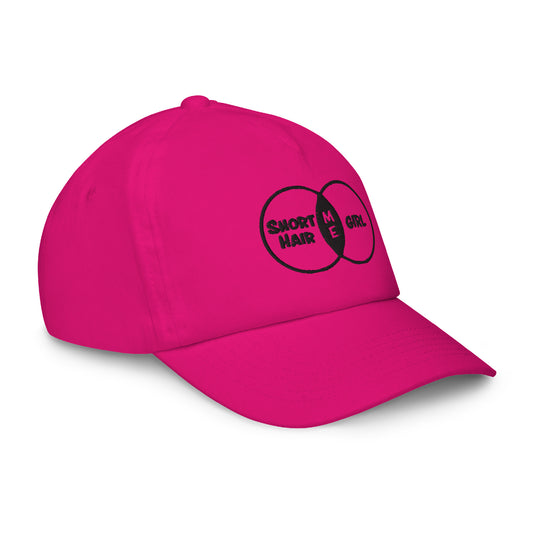 Short Hair Bold Girl Embroidered Hat Fuchsia & White - Kid size