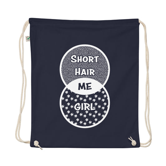 Short Hair Bold Girl Organic Cotton Drawstring Bag
